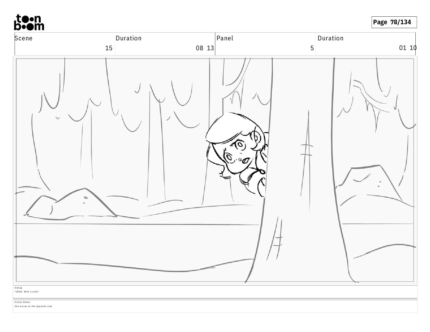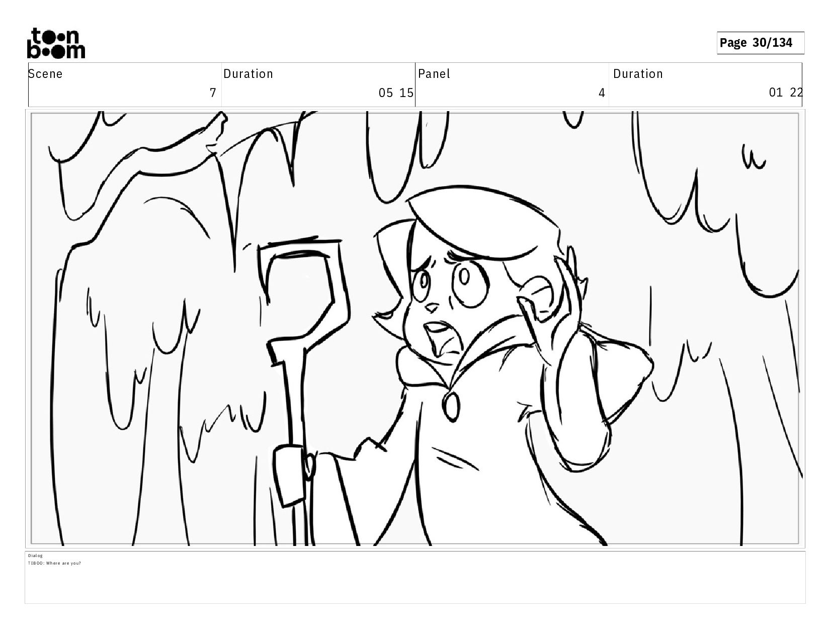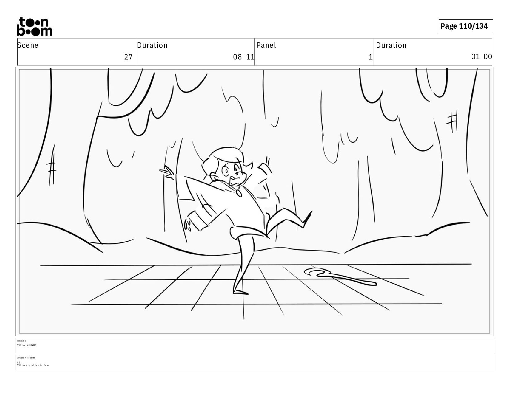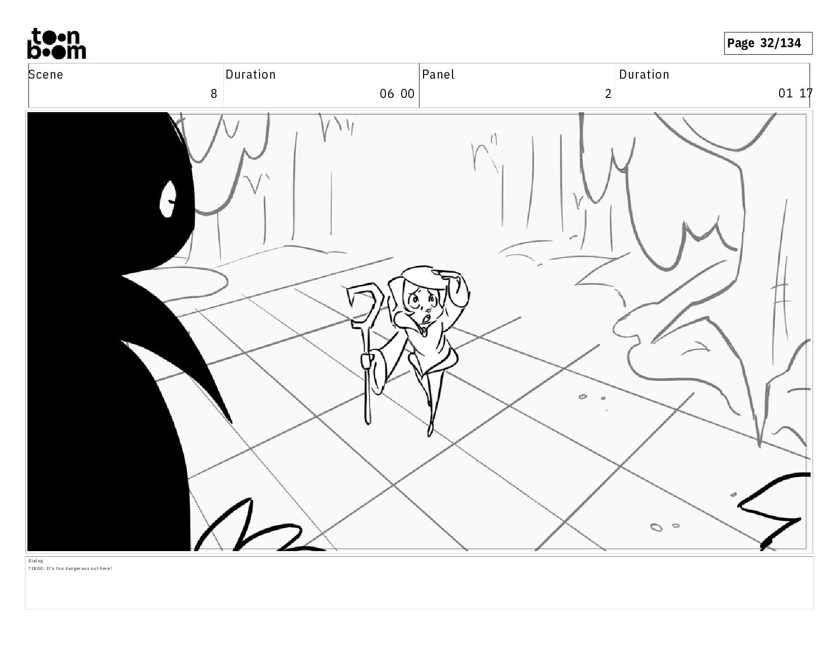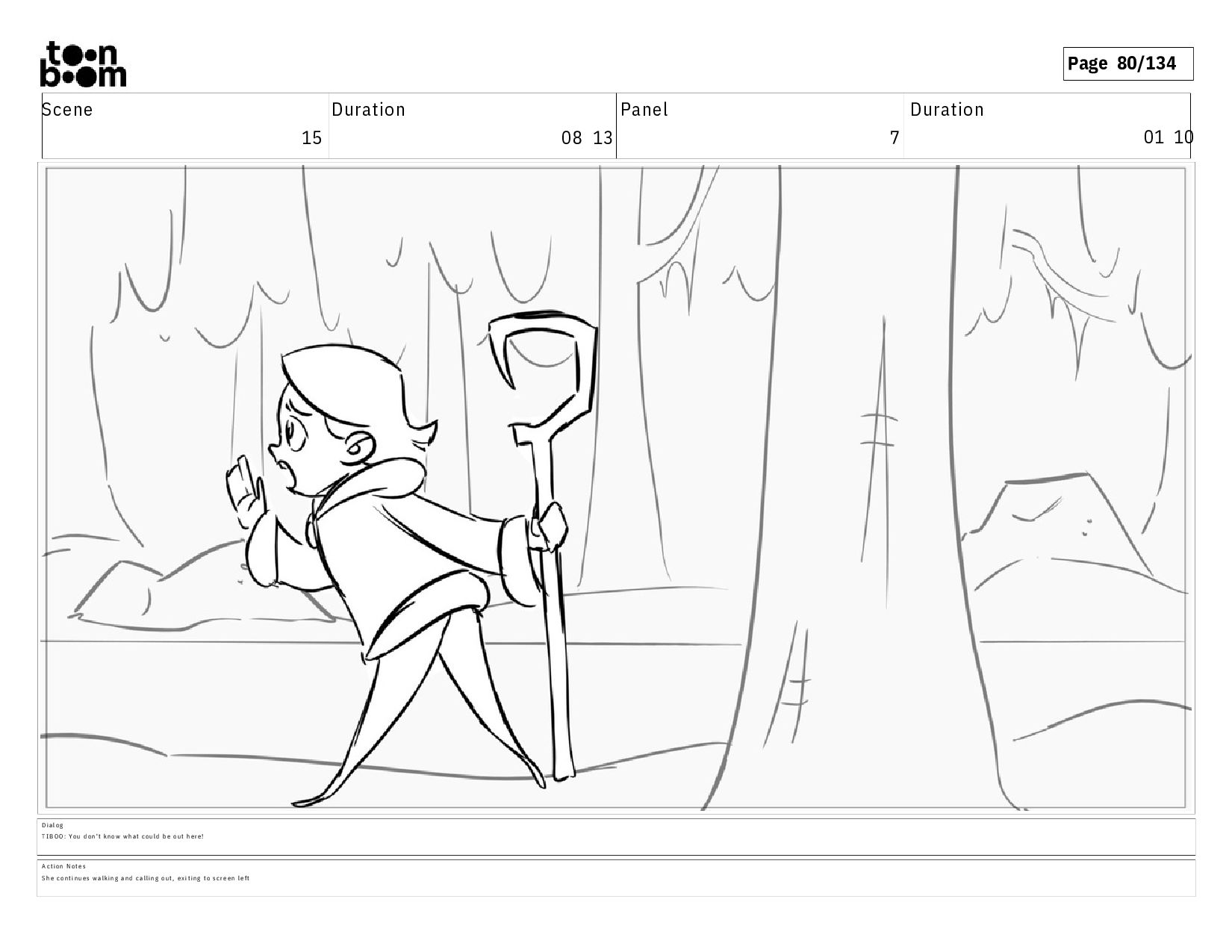01 10 D i a l o g T I B O O : Y o u d o n ' t k n o w w h a t c o u l d b e o u t h e r e ! A c t i o n N o t e s S h e c o n t i n u e s w a l k i n g a n d c a l l i n g o u t , e x i t i n g t o s c r e e n l e f t