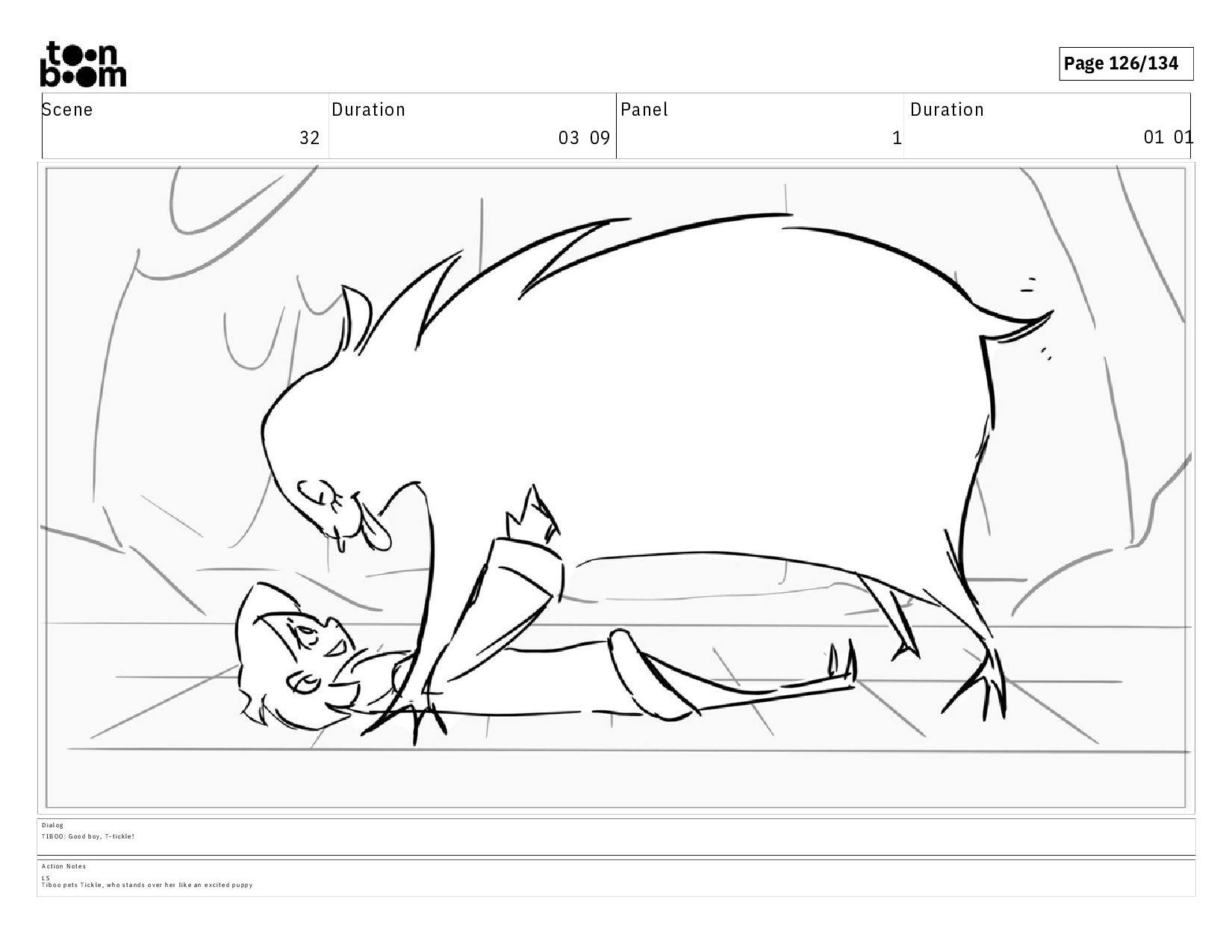 01 01 D i a l o g T I B O O : G o o d b o y , T - t i c k l e ! A c t i o n N o t e s L S T i b o o p e t s T i c k l e , w h o s t a n d s o v e r h e r l i k e a n e x c i t e d p u p p y