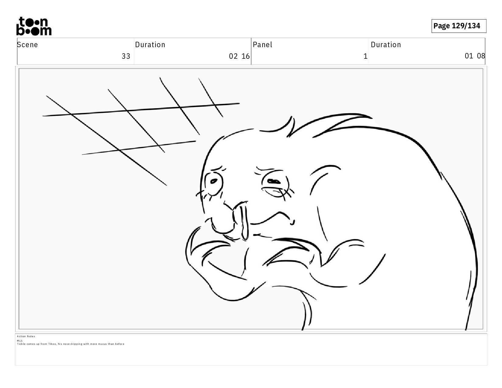 01 08 A c t i o n N o t e s M L S T i c k l e c o m e s u p f r o m T i b o o , h i s n o s e d r i p p i n g w i t h m o r e m u c u s t h a n b e f o r e