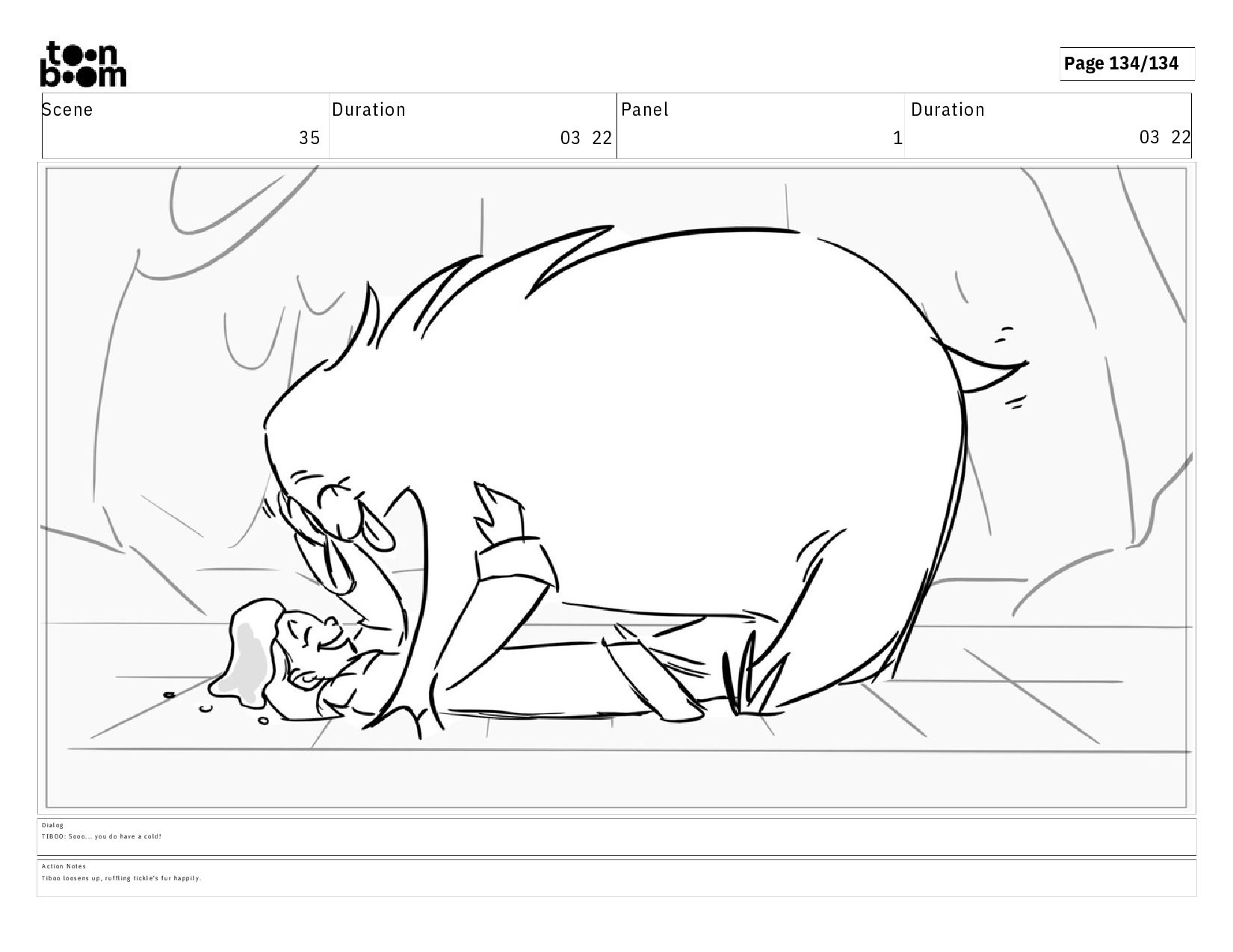 03 22 D i a l o g T I B O O : S o o o . . . y o u d o h a v e a c o l d ! A c t i o n N o t e s T i b o o l o o s e n s u p , r u f f l i n g t i c k l e ' s f u r h a p p i l y .