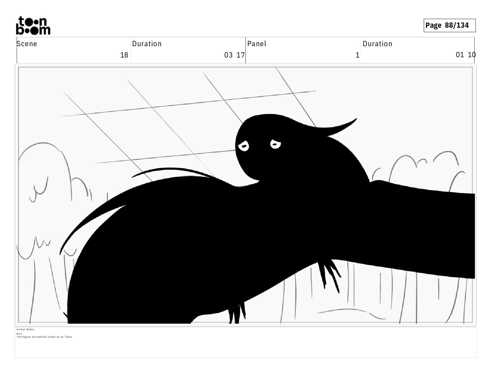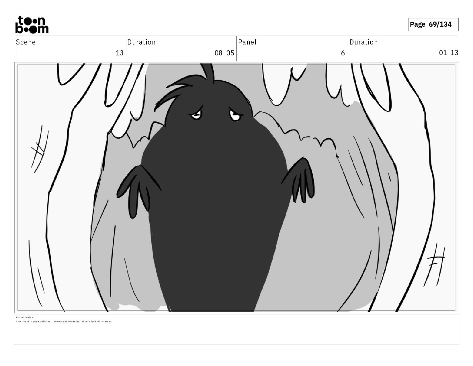 01 13 A c t i o n N o t e s T h e f i g u r e ' s p o s e d e f l a t e s , l o o k i n g s a d d e n e d b y T i b o o ' s l a c k o f i n t e r e s t