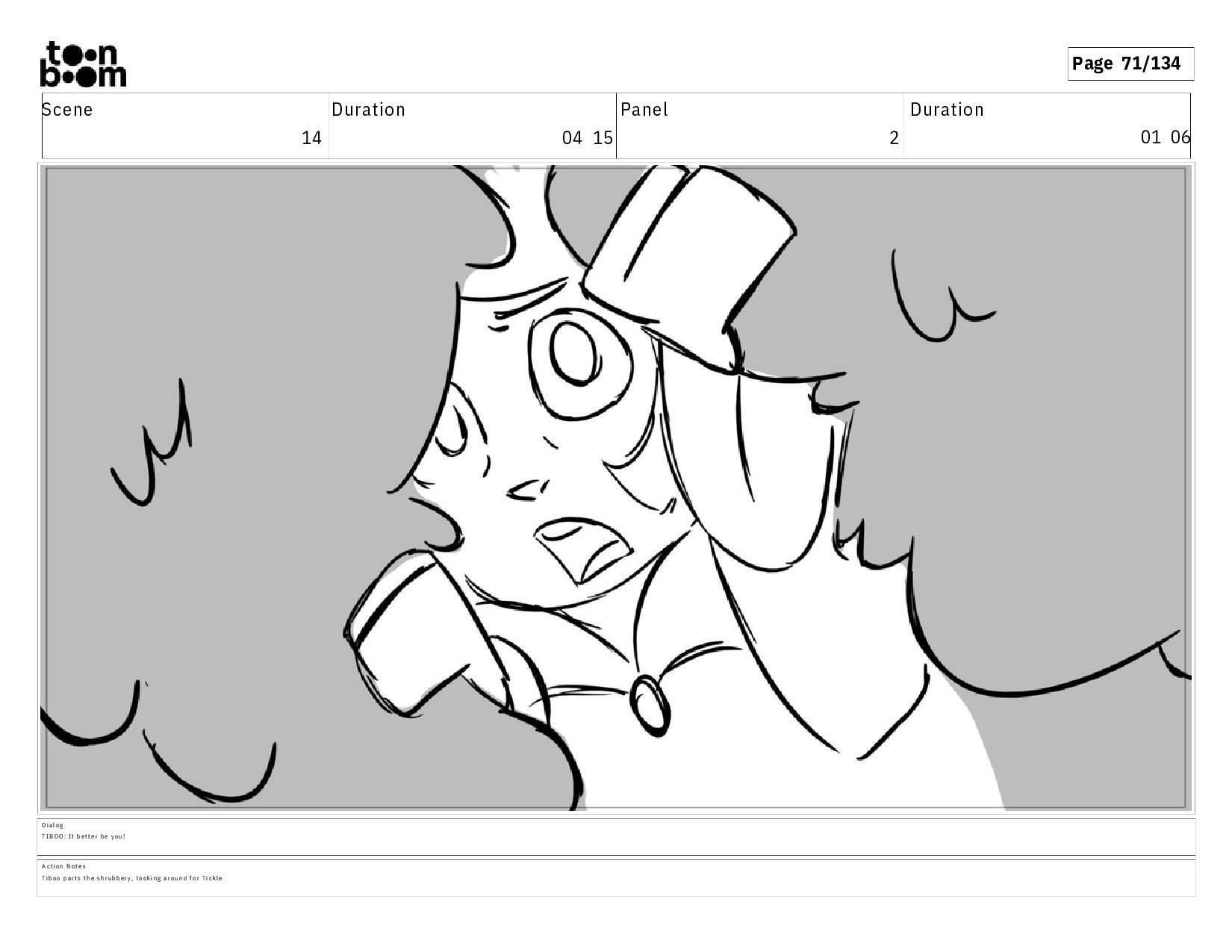 01 06 D i a l o g T I B O O : I t b e t t e r b e y o u ! A c t i o n N o t e s T i b o o p a r t s t h e s h r u b b e r y , l o o k i n g a r o u n d f o r T i c k l e