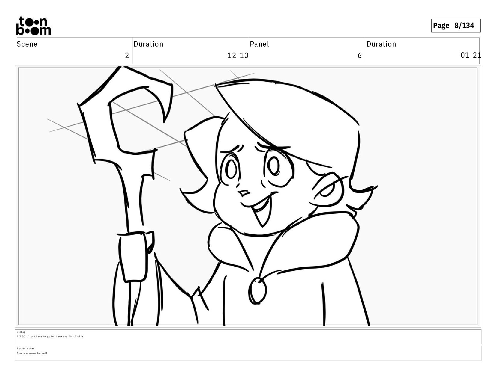 01 21 A c t i o n N o t e s S h e r e a s s u r e s h e r s e l f D i a l o g T I B O O : I j u s t h a v e t o g o i n t h e r e a n d f i n d T i c k l e !