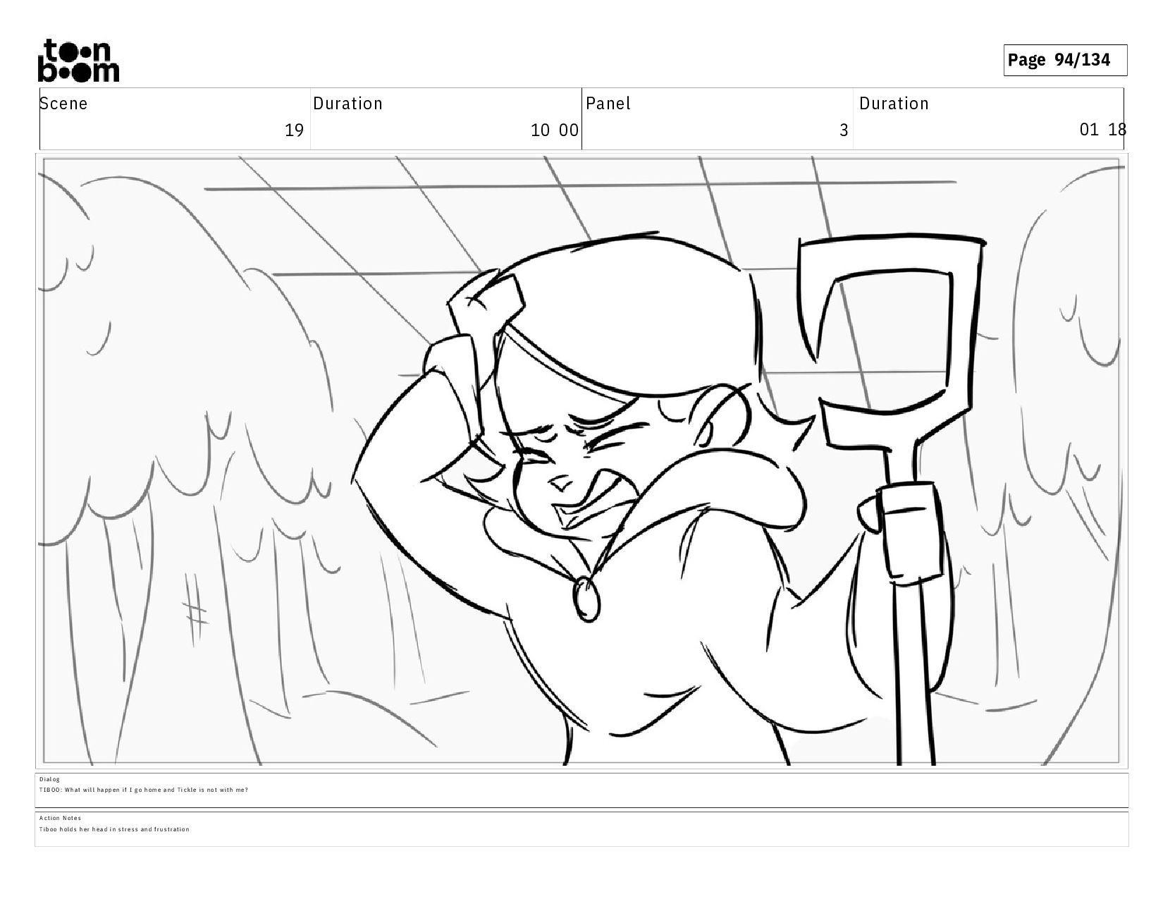 01 18 A c t i o n N o t e s T i b o o h o l d s h e r h e a d i n s t r e s s a n d f r u s t r a t i o n D i a l o g T I B O O : W h a t w i l l h a p p e n i f I g o h o m e a n d T i c k l e i s n o t w i t h m e ?