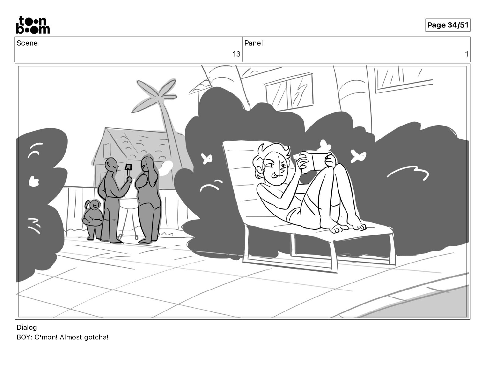 Scene 13 Panel 1 Dialog BOY: C'mon! Almost gotcha! Page