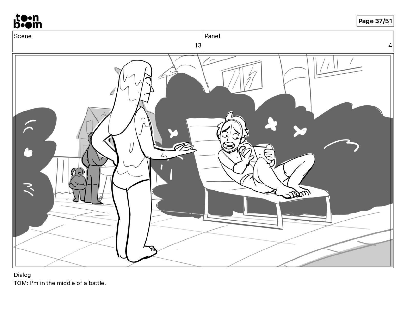Scene 13 Panel 4 Dialog TOM: I'm in the middle