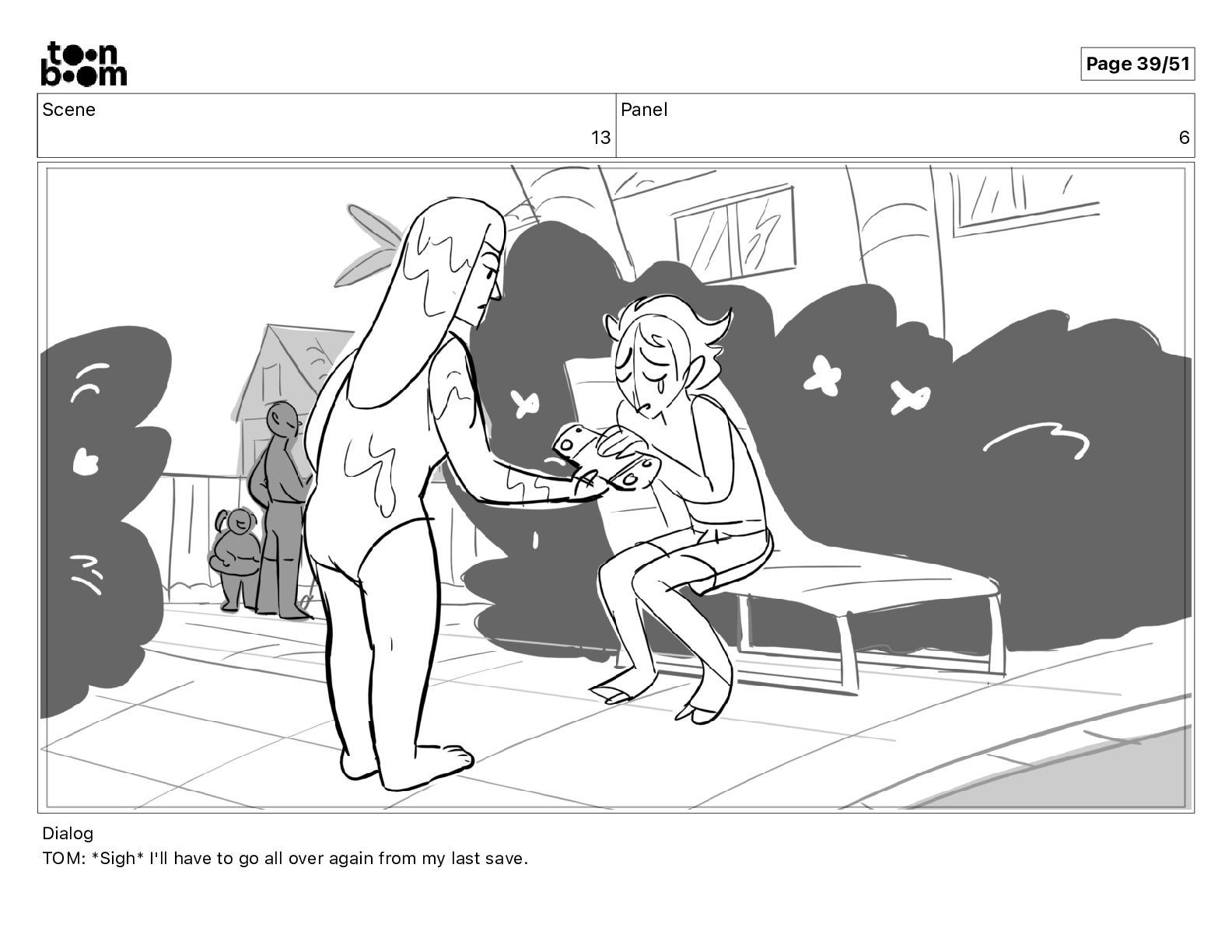 Scene 13 Panel 6 Dialog TOM: *Sigh* I'll have to