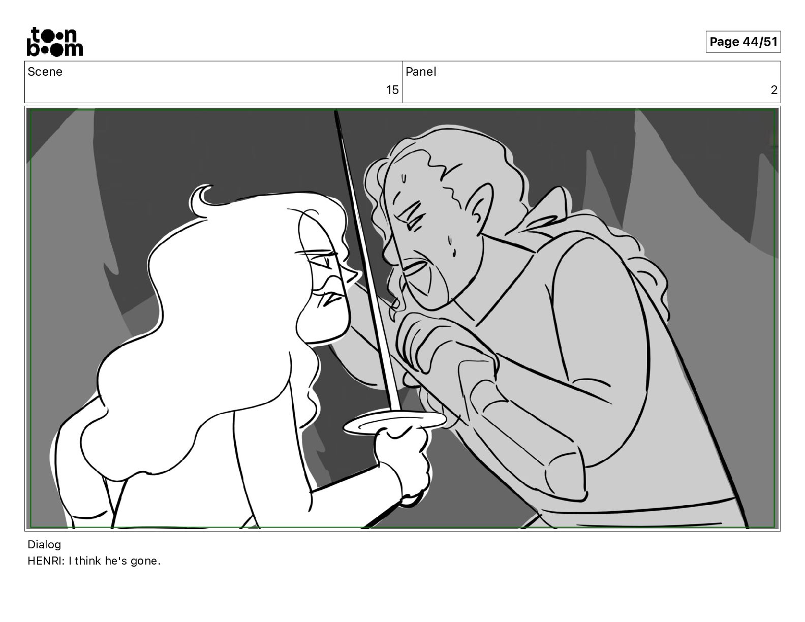 Scene 15 Panel 2 Dialog HENRI: I think he's gone.