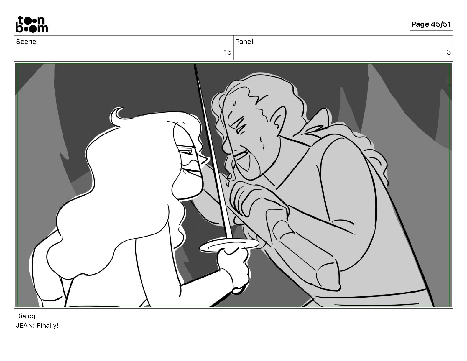 Scene 15 Panel 3 Dialog JEAN: Finally! Page 45/51