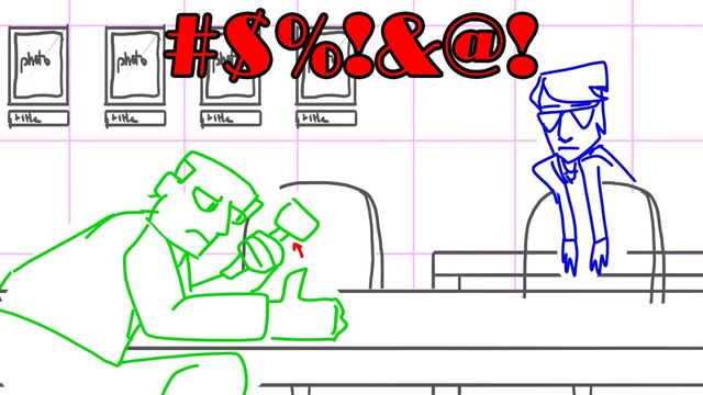 This was a test sequence based on an unaired script by Jason K. Allen, reimagining its story in an "Inside Job"-inspired style. These boards depict Ned and Harvey at their lowest as they try to come up with a new swear word.