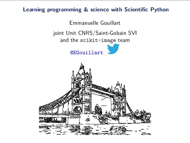 that scale Several weeks of tutorials! Beginners: the core of Scientific Python Advanced: learn more tricks Packages: specific applications and packages Developed and used for Euroscipy conferences Curated and enriched over the years