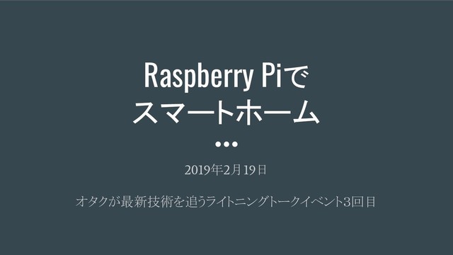 Raspberry Piで スマートホーム 2019 年 2 月 19 日 オタクが最新技術を追うライトニングトークイベント3回目