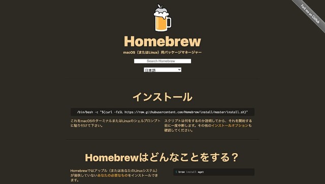 Homebrewの公式にアクセスし、インストールの部分のコードをコピーし、ターミナルで実行させます。