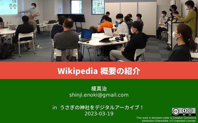 諸国・浪漫 のイベント「うさぎの神社をデジタルアーカイブ!」でウィキペディアの概要や簡単な編集方法について紹介した時のスライドです。 https://countries-romantic.connpass.com/event/276541/