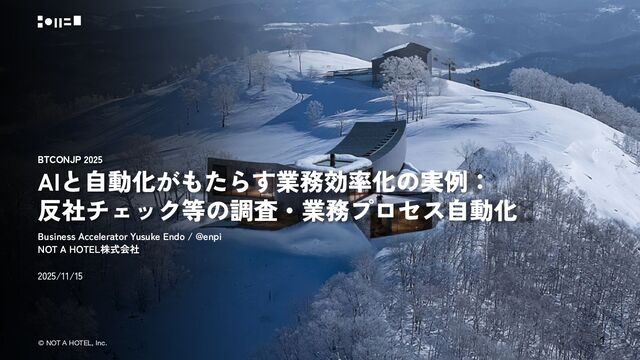 BTCONJP 2025 で「AIと自動化がもたらす業務効率化の実例: 反社チェック等の調査・業務プロセス自動化」について話をしました。