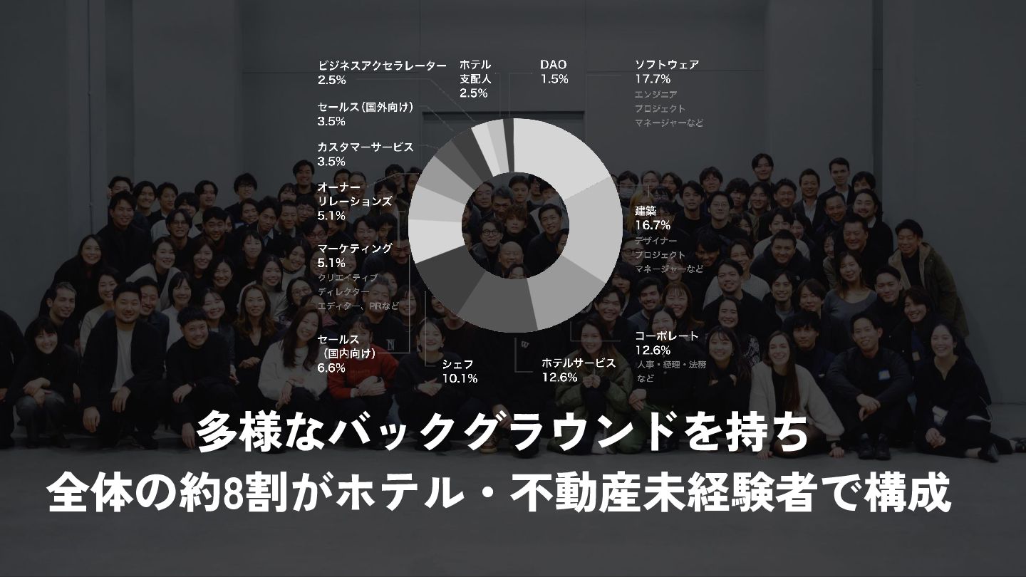 © NOT A HOTEL, Inc. 多様なバックグラウンドを持ち 全体の約8割がホテル・不動産未経験者で構成