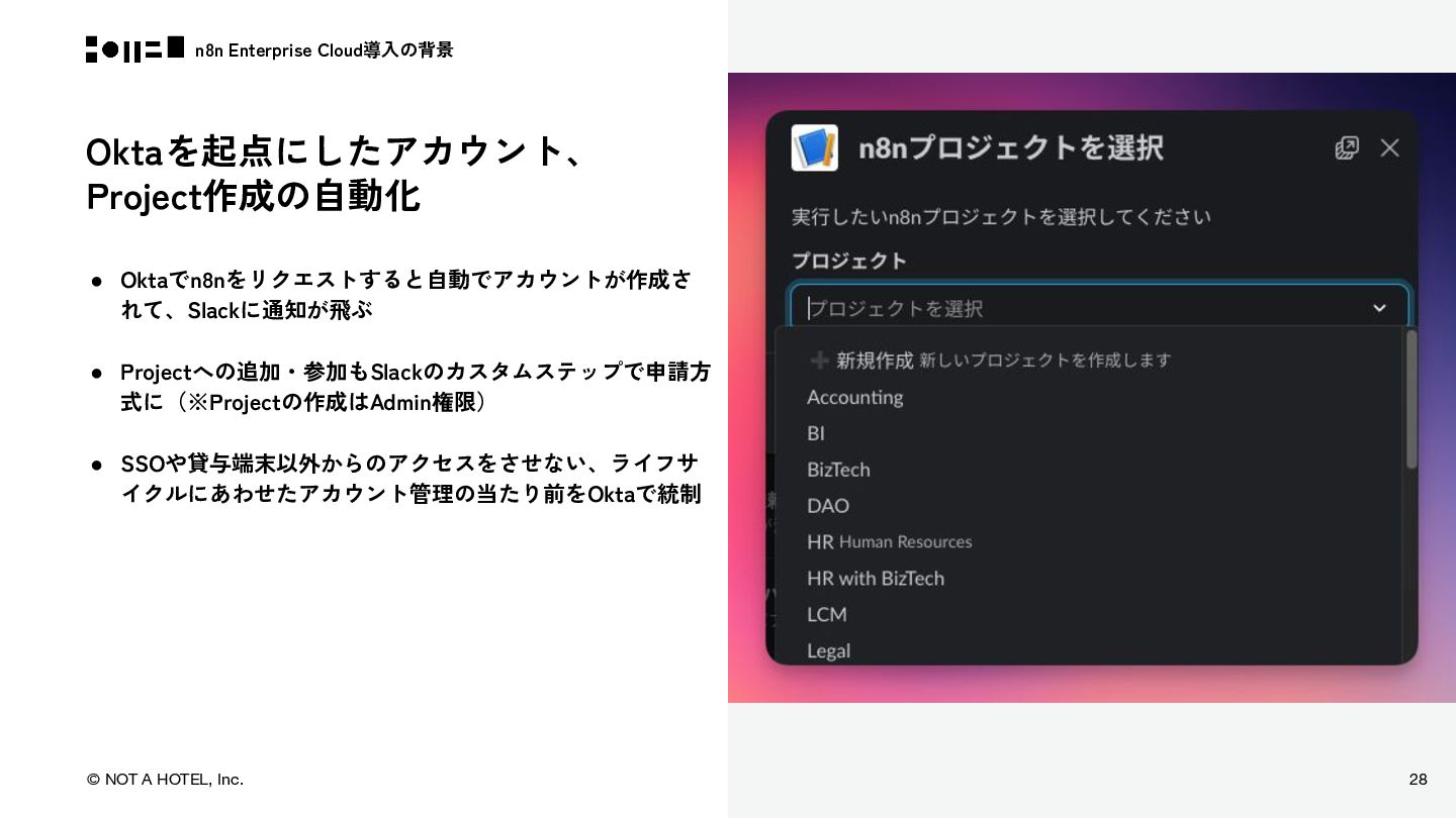 © NOT A HOTEL, Inc. n8n Enterprise Cloud導入の背景 26 Oktaを起点にしたアカウント、