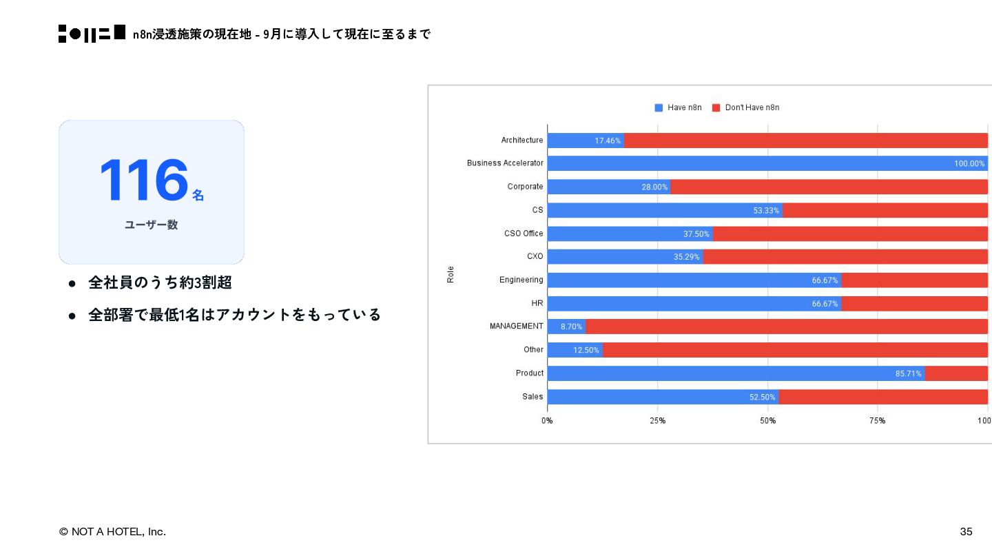 © NOT A HOTEL, Inc. n8n浸透施策の現在地 - 9月に導入して現在に至るまで 34