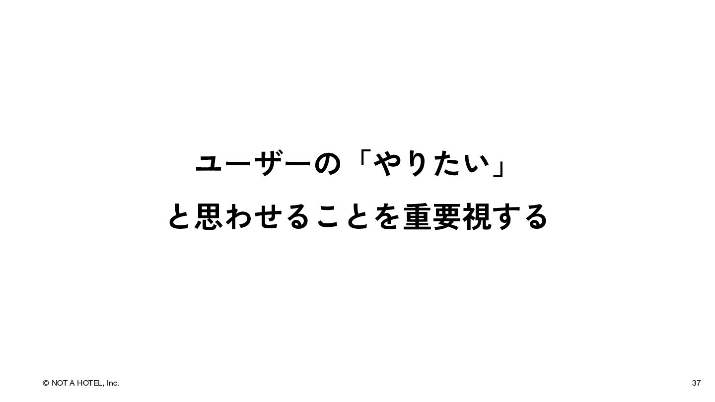 © NOT A HOTEL, Inc. 35 ユーザーの「やりたい」 と思わせることを重要視する