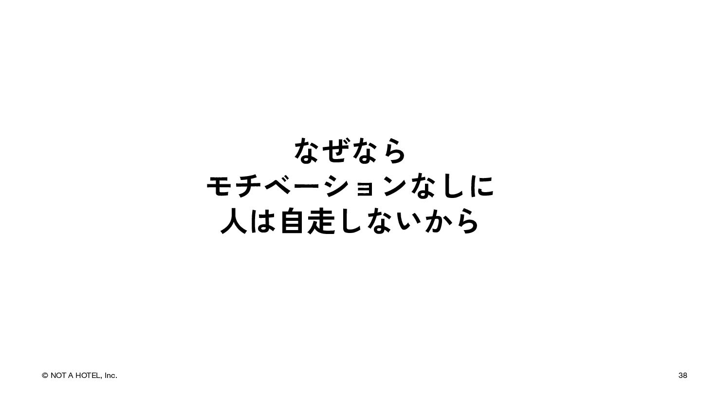 © NOT A HOTEL, Inc. 36 なぜなら モチベーションなしに 人は自走しないから