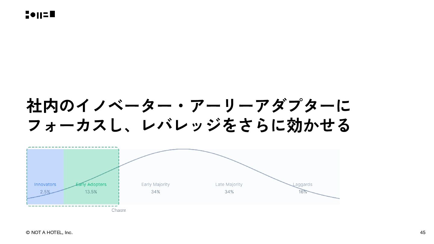 © NOT A HOTEL, Inc. 社内のイノベーター・アーリーアダプターに フォーカスし、レバレッジをさらに効かせる 41