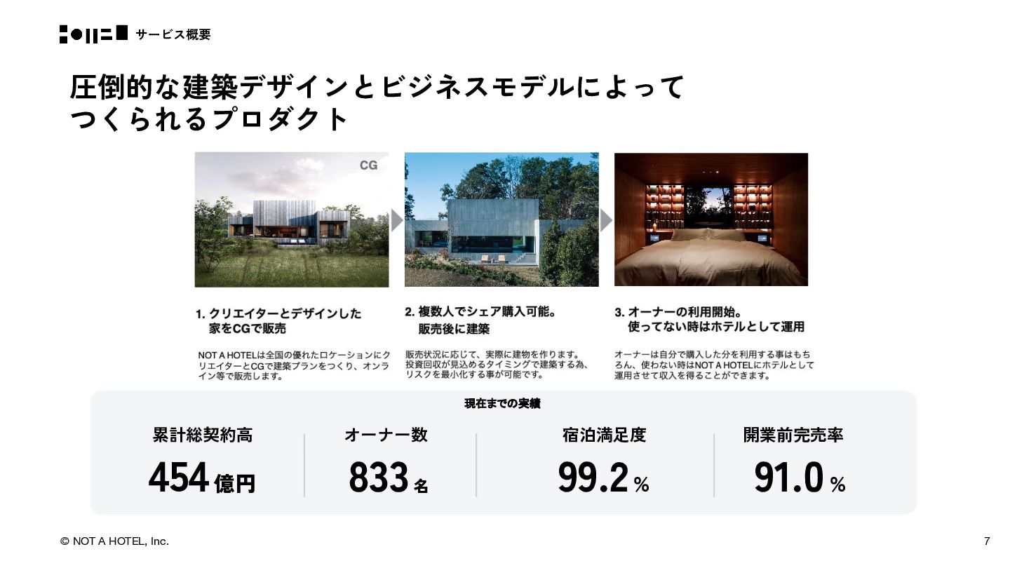 © NOT A HOTEL, Inc. サービス概要 7 圧倒的な建築デザインとビジネスモデルによって つくられるプロダクト 99.2%