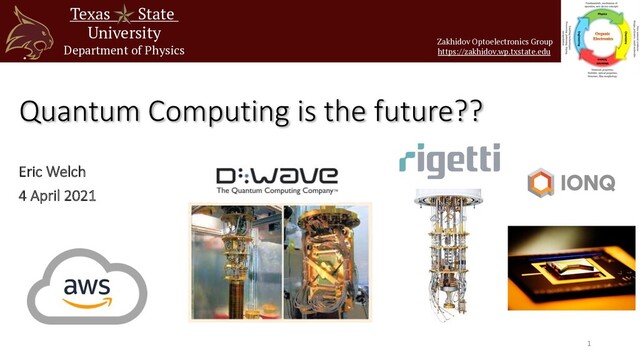 created Annealing 1. Requires ultracold environment 2. Use magnetic fields to mirror an energy minimization problem 3. Couplers used to modify probability of measurements 4. Large number of qubits (𝑛 > 2000) 5. Solves somewhat hard problems (class NP) Gate 1. Requires ultracold environment/atoms 2. Gates are used in succession for computing 3. Small number of qubits (𝑛 < 50) 4. Solves very hard problems (class P)
