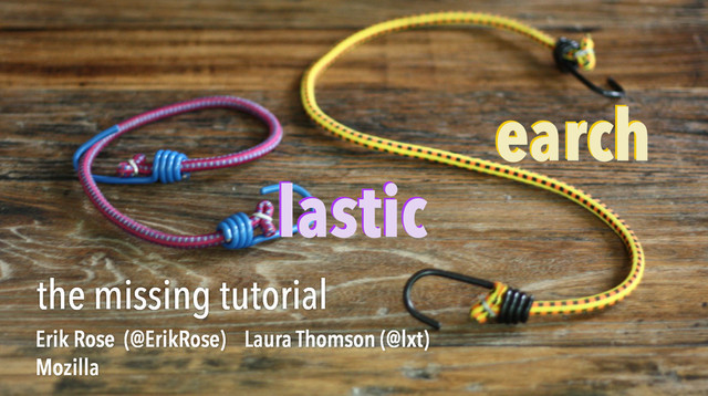things in bold: % curl -s XPUT 'http://127.0.0.1:9200/test/book/1' -d '{ "title": "All About Fish", "tag": ["one", "two", "red", "blue"] }' exercise: array play # A sample query--try changing the bold things: % curl -s -XGET 'http://127.0.0.1:9200/test/book/_search?pretty' -d '{ "query": { "match_all": {} }, "filter": { "term": {"tag": ["two", "three"]} } }' "red" ["blue"] ["one", "red"] "two"