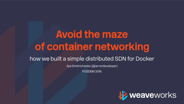 In this talk, Weave Net's engineers will share what is required to deliver this level of user experience, through the implementation decisions they have made.