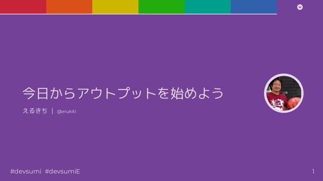#devsumi #devsumiE 今日からアウトプットを始めよう えるきち | @erukiti 1