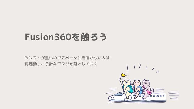 Fusion360を触ろう ※ソフトが重いのでスペックに自信がない人は 再起動し、余計なアプリを落としておく