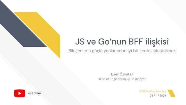 alanında nasıl bir yıl olduğunun geçmiş dönük değerlendirmesini yapıyorum: ◆ 2022: 5 yıl sonraki JavaScript'e bugünden bakış ◆ 2023: 2024'e Girerken JavaScript: Yeni JavaScript runtime’larıyla bir ekosistem örmek ◆ ve bu yıl, 2024: JavaScript ve Golang’in BFF ilişkisi ➔ Bu yılki konunun motivasyonu, bana gelen soruların büyük bir çoğunluğu: ◆ AI dönüşümüne karşı nasıl refleks göstermeliyiz? ◆ Frontend bitti mi, full-stack mi olmamız gerekiyor? ◆ Sektör daralıyor ne yapmalıyız? ➔ Hepsinin ortak yanıtı ”eldeki araçları daha iyi kullanıp daha verimli bir geliştirme çıktısı elde etmek gerekiyor”, peki bunu sağlamak için piyasada hem yönetici hem de developer olarak devam eden bir profesyonel olarak ben neler yapıyorum?... …ve ne anlatacağım