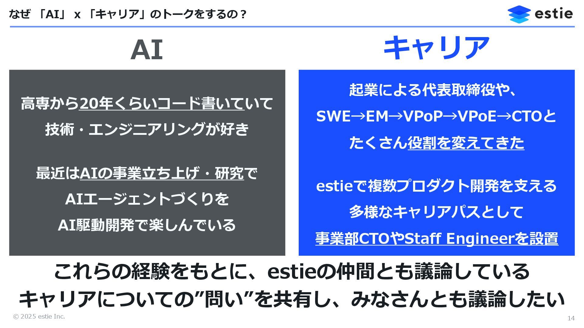 © 2025 estie Inc. なぜ 「AI」 x 「キャリア」のトークをするの︖ 14 キャリア