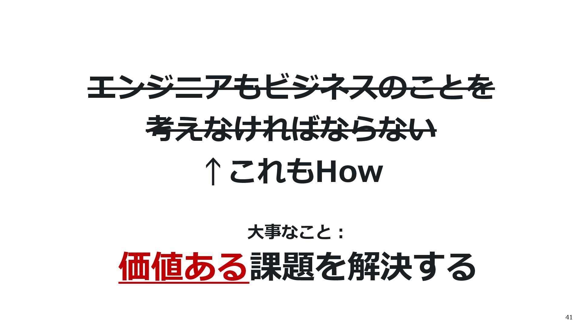 © 2025 estie Inc. 41 エンジニアもビジネスのことを 考えなければならない ↑これもHow ⼤事なこと︓ 価値ある課題を解決する