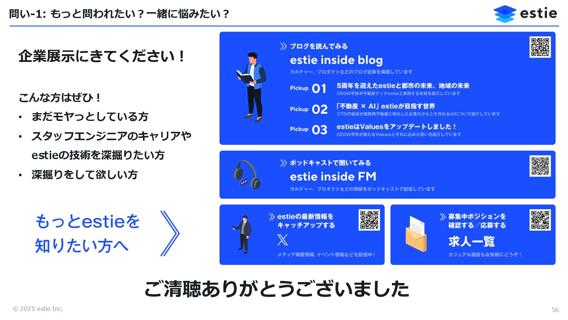 © 2025 estie Inc. 55 良い問いを設定できていますか︖ “エンジニアリング”やっていきましょう