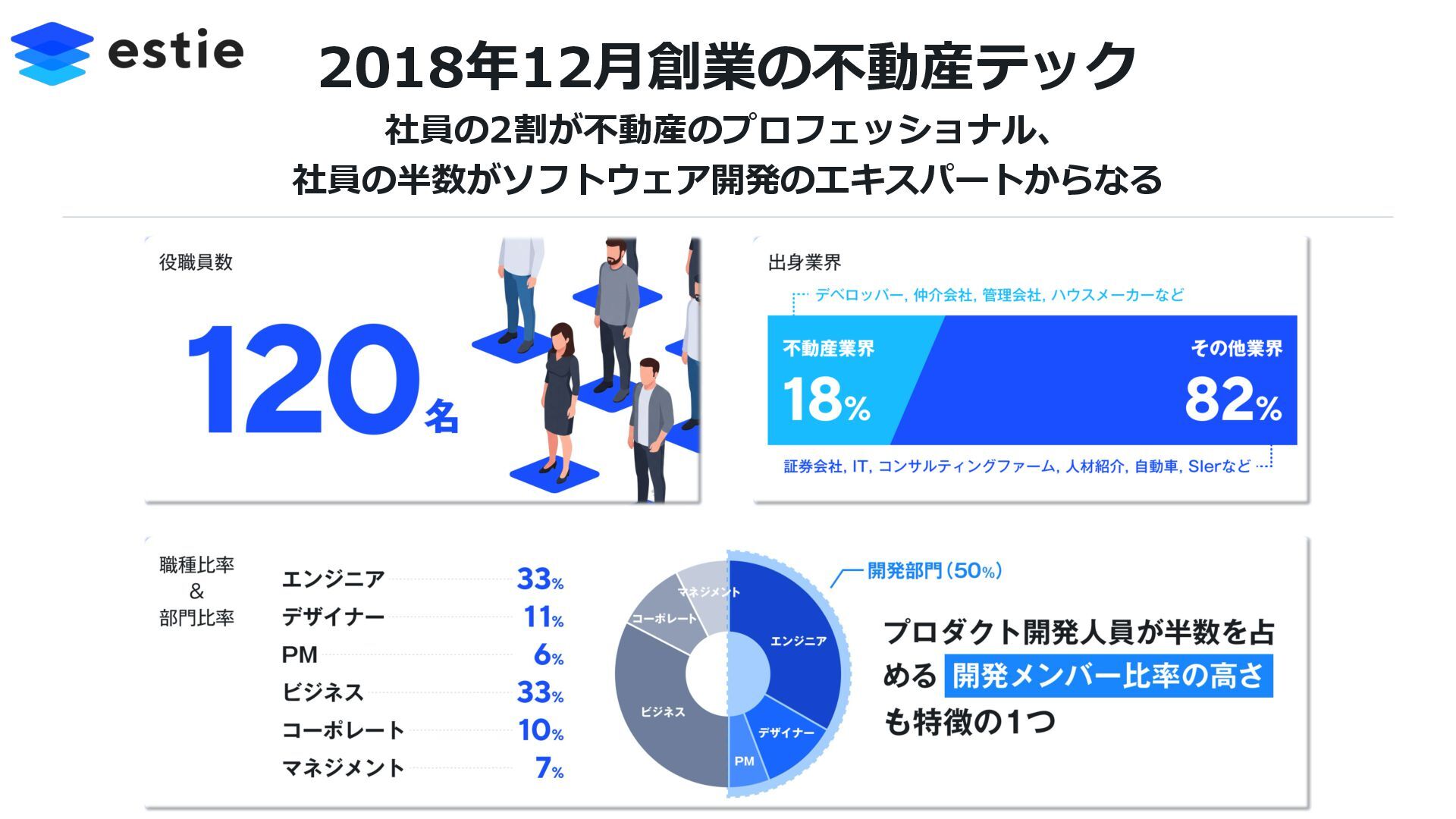 © 2025 estie Inc. 2018年12⽉創業の不動産テック 社員の2割が不動産のプロフェッショナル、 社員の半数がソフトウェア開発のエキスパートからなる