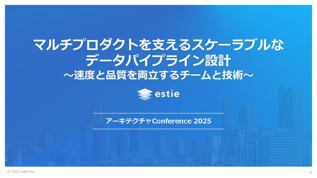 © 2025 estie Inc. アーキテクチャConference 2025 マルチプロダクトを⽀えるスケーラブルな データパイプライン設計 〜速度と品質を両⽴するチームと技術〜 0
