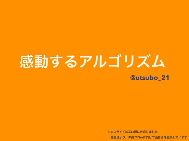 ײಈ͢ΔΞϧΰϦζϜ @utsubo_21 ※ ຊεϥΠυLT༻ʹ࡞͠·ͨ͠ ɹݫີੑΑΓɼඇڝϓϩerʹ͚ͯ໘ന͞Λॏࢹ͍ͯ͠·͢