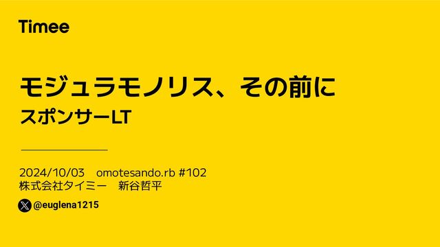 2024/10/03 omotesando.rb #102 株式会社タイミー 新谷哲平 モジュラモノリス、その前に スポンサーLT @euglena1215
