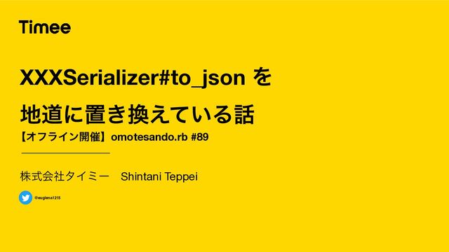 גࣜձࣾλΠϛʔɹShintani Teppei XXXSerializer#to_json Λ ಓʹஔ͖͍͑ͯΔ @euglena1215 ʲΦϑϥΠϯ։࠵ʳomotesando.rb #89