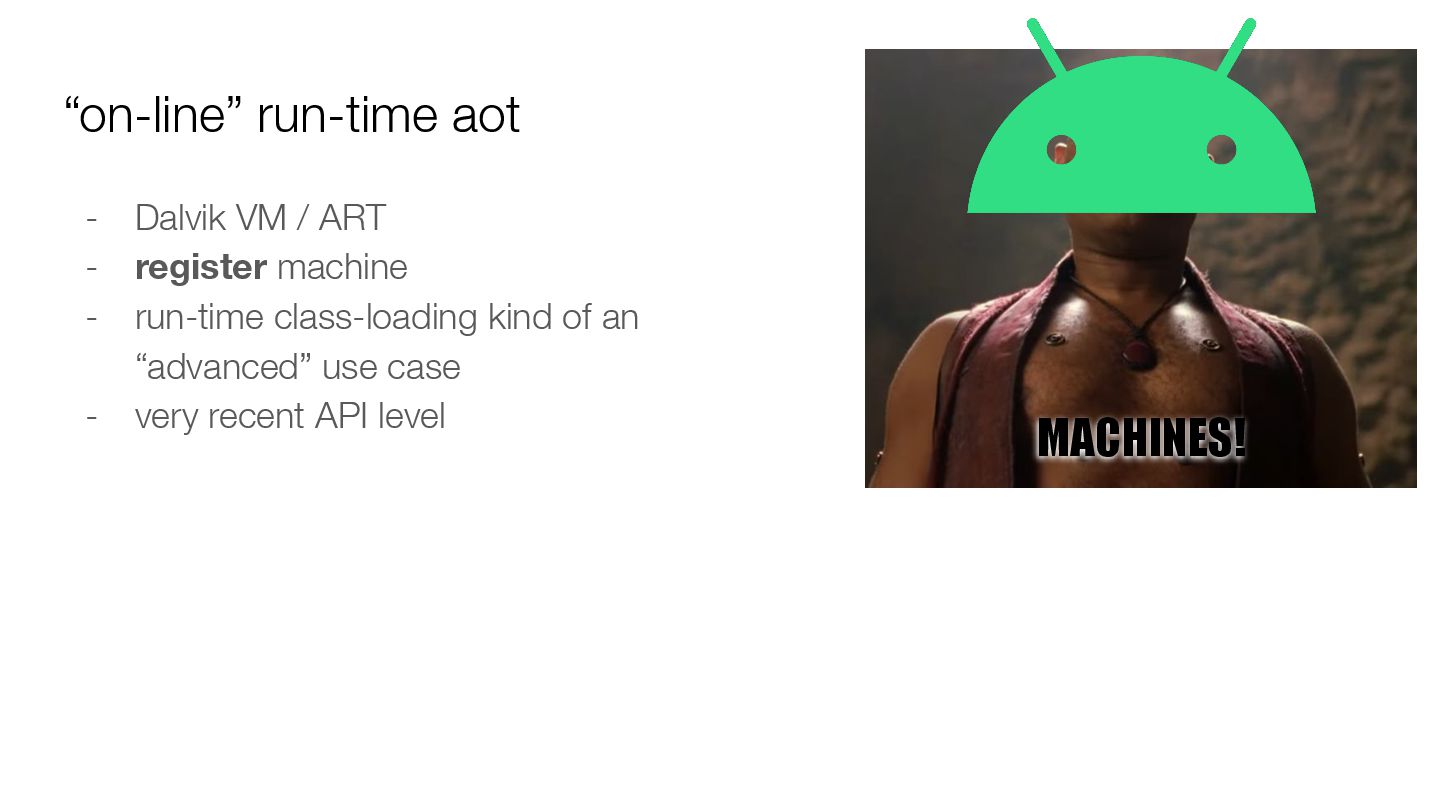 64. “on-line” run-time aot - Dalvik VM / ART - register