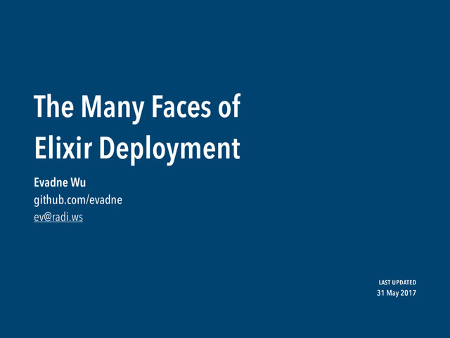 Phoenix ➤ Dockerisation, OTP Releases, etc. already covered numerous times ➤ Distillery is clearly the way forward Starting from scratch is a different story ➤ Let’s try to build up a decision framework