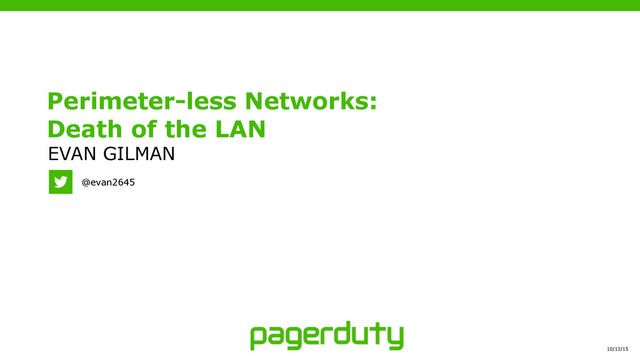 1. 10/13/15 @evan2645 PERIMETER-LESS NETWORKS: DEATH OF THE LAN What is