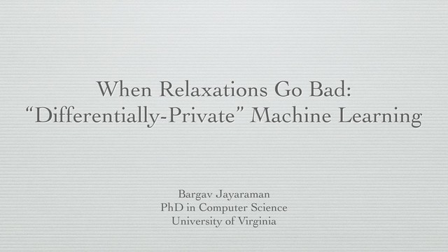Bargav Jayaraman's talk at the DC-Area Anonymity, Privacy, and Security Seminar