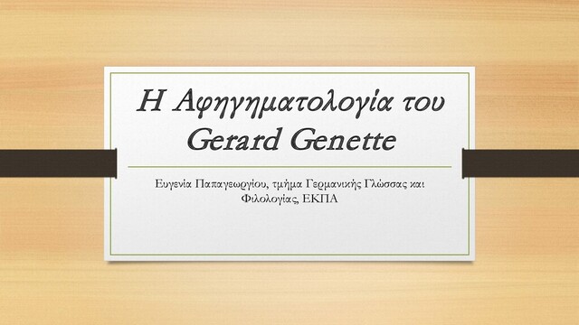 Αναλυτική παρουσίαση της αφηγηματολογίας του Gerard Genette + παραδείγματα λογοτεχνικών κειμένων.