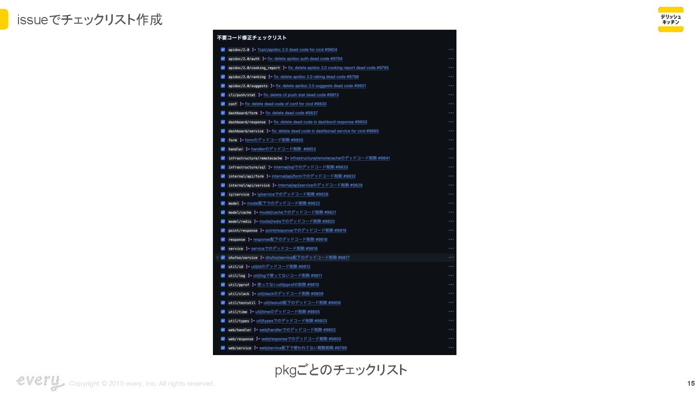 14 Copyright © 2015 every, Inc. All rights reserved. デッドコードの削除(作業)