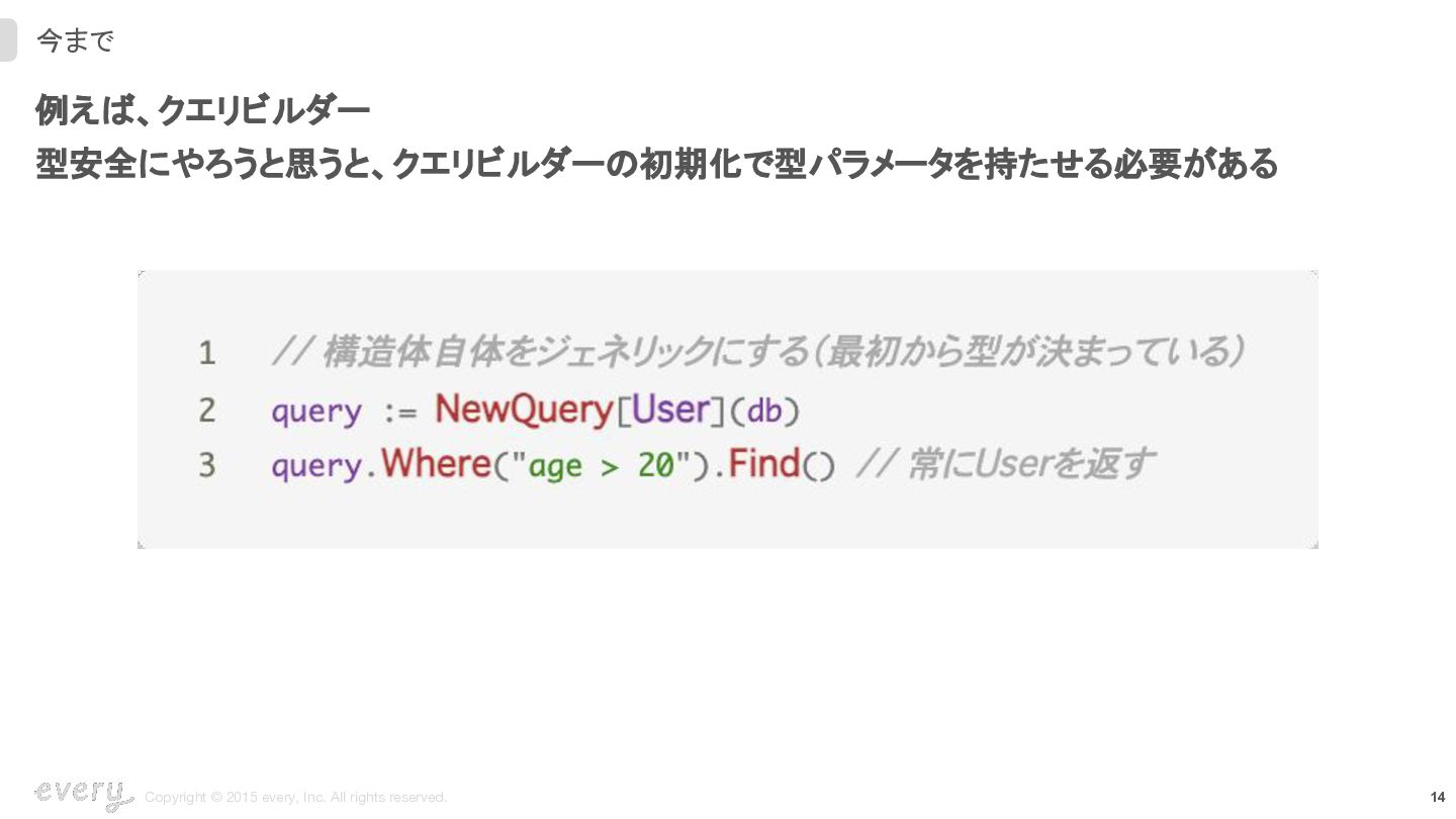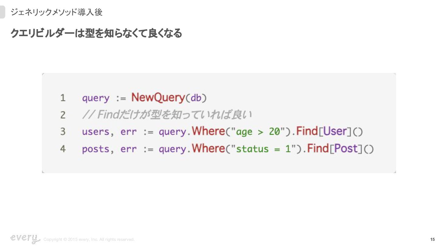 12. 19 Copyright © 2015 every, Inc. All rights reserved. ジェネリックメソッド導入後