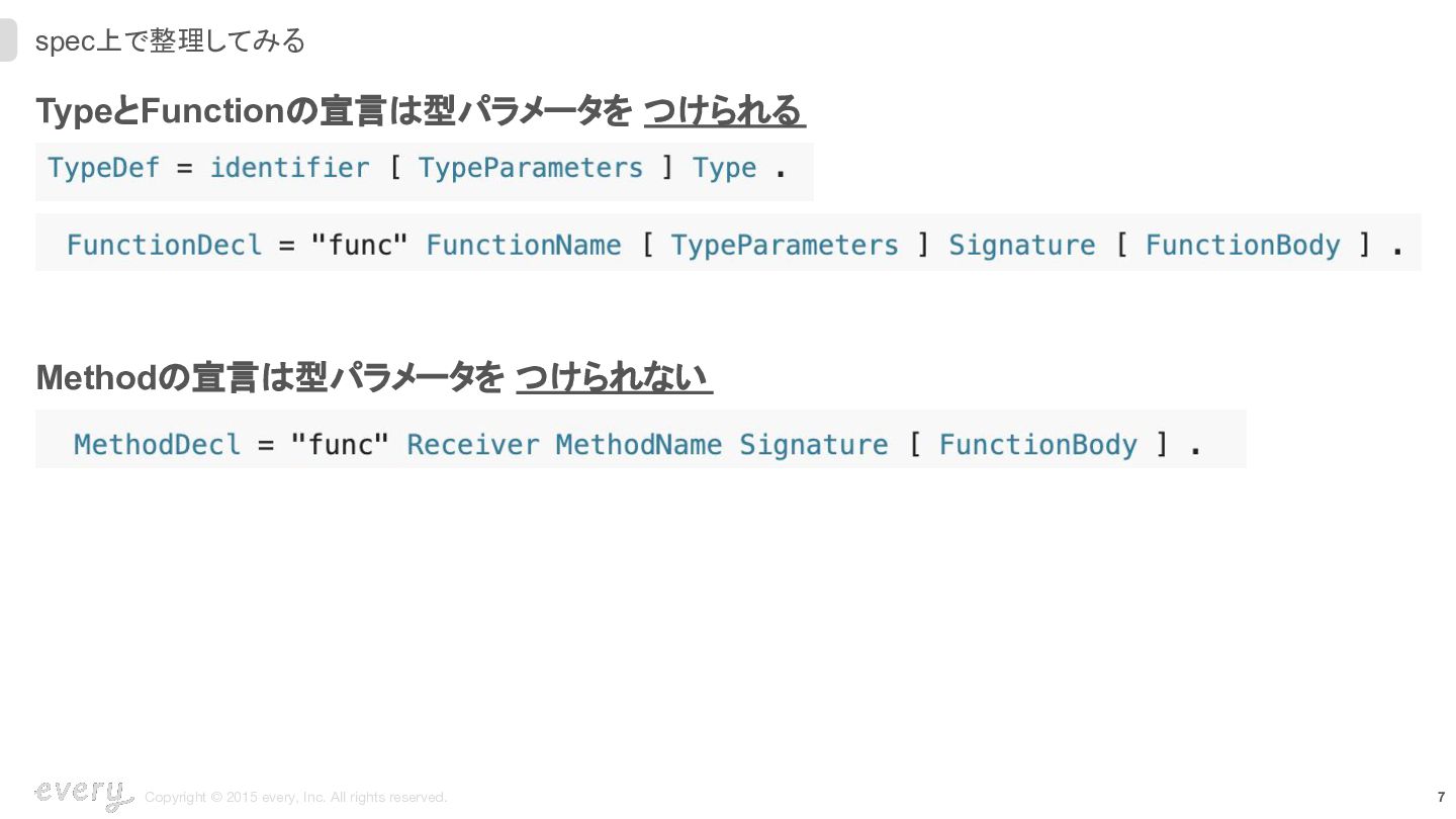 5. 7 Copyright © 2015 every, Inc. All rights reserved. spec上で整理してみる