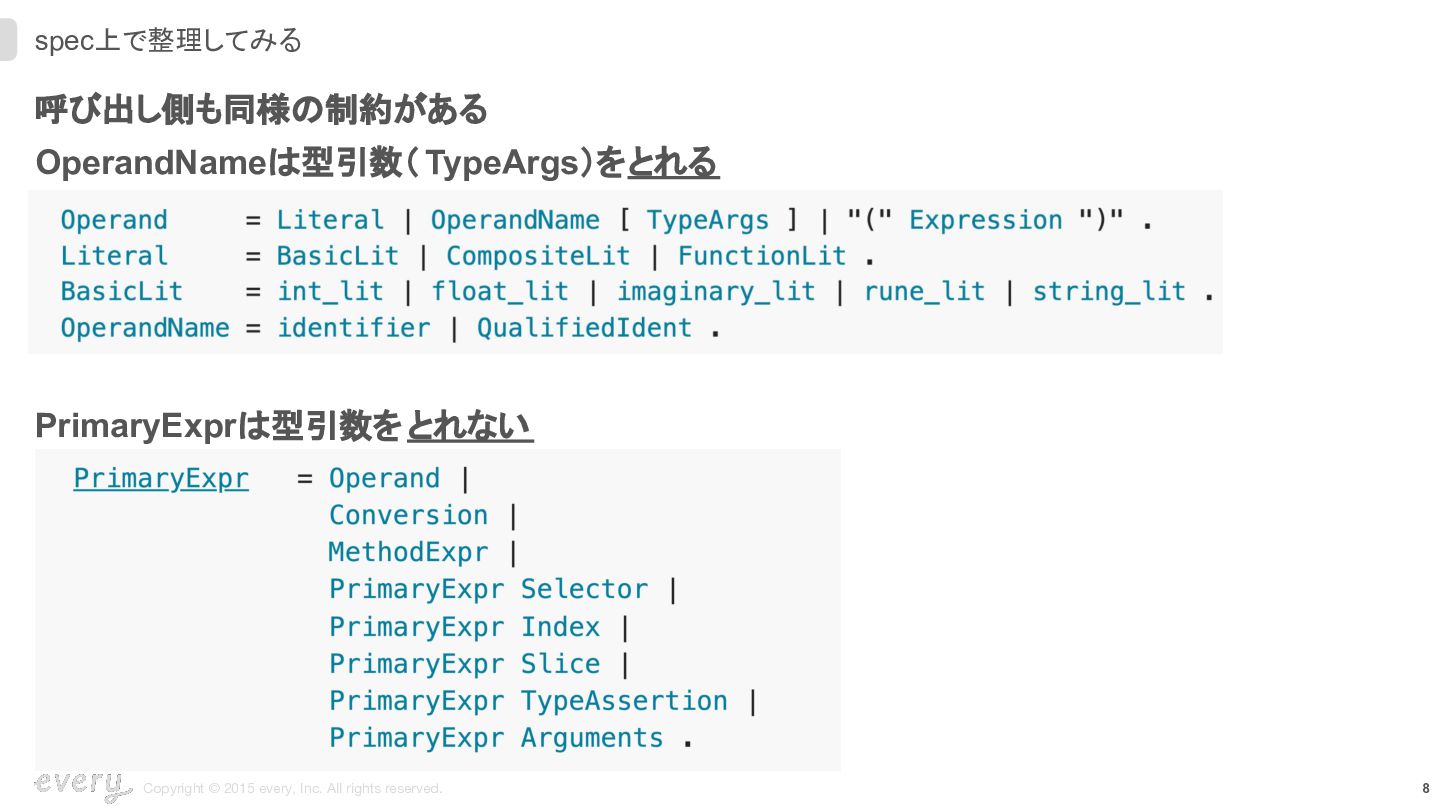 呼び出し側も同様の制約がある OperandNameは型引数( TypeArgs)をとれる PrimaryExprは型引数を とれない