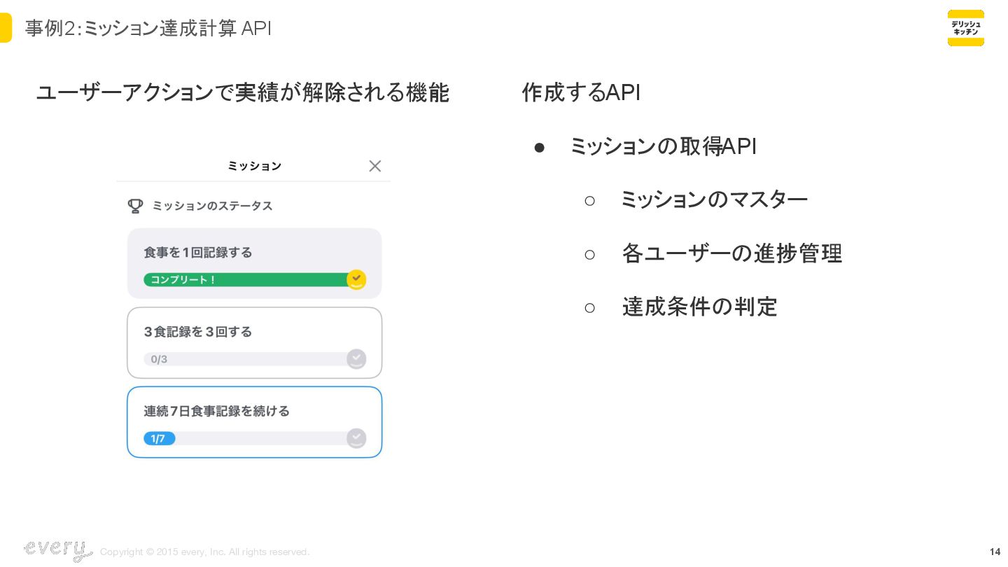 14 Copyright © 2015 every, Inc. All rights reserved. 事例2:ミッション達成計算